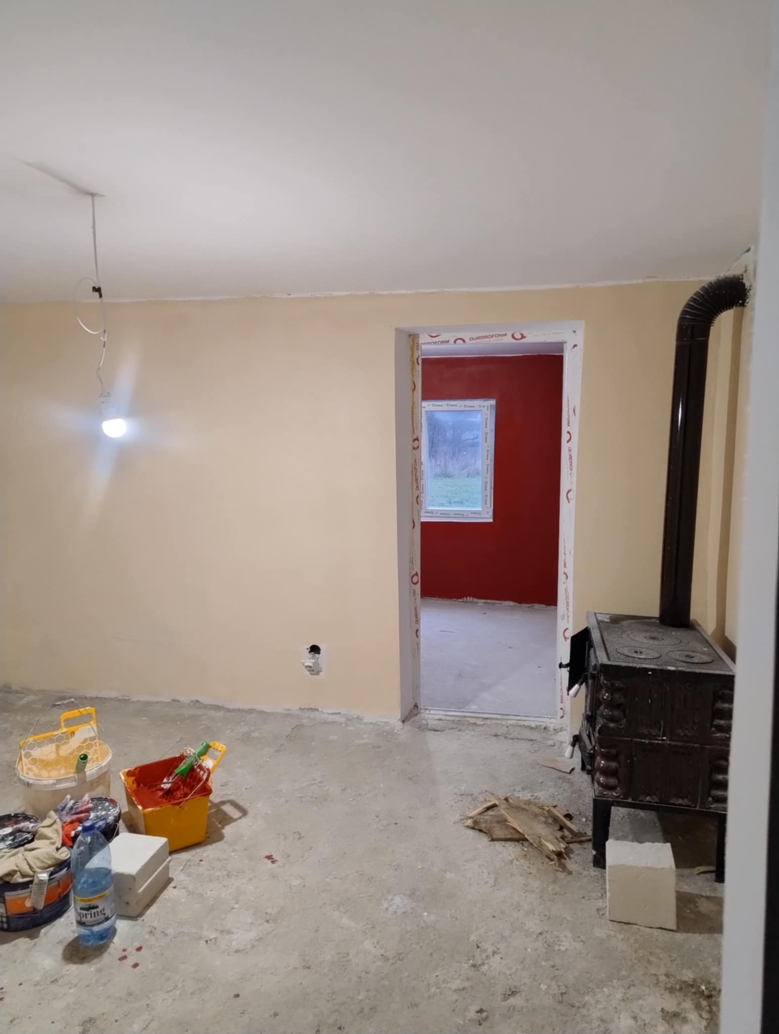 10 december 2025 - De ontvangen nieuwe foto's geven een goede indruk van de voortgang. We zien dat de muren gestuced zijn en we zien dat er een nieuwe oven (voor zowel keuken als voor verwarming) is aangeschaft. Deze moet nog wel geplaatst gaan worden.