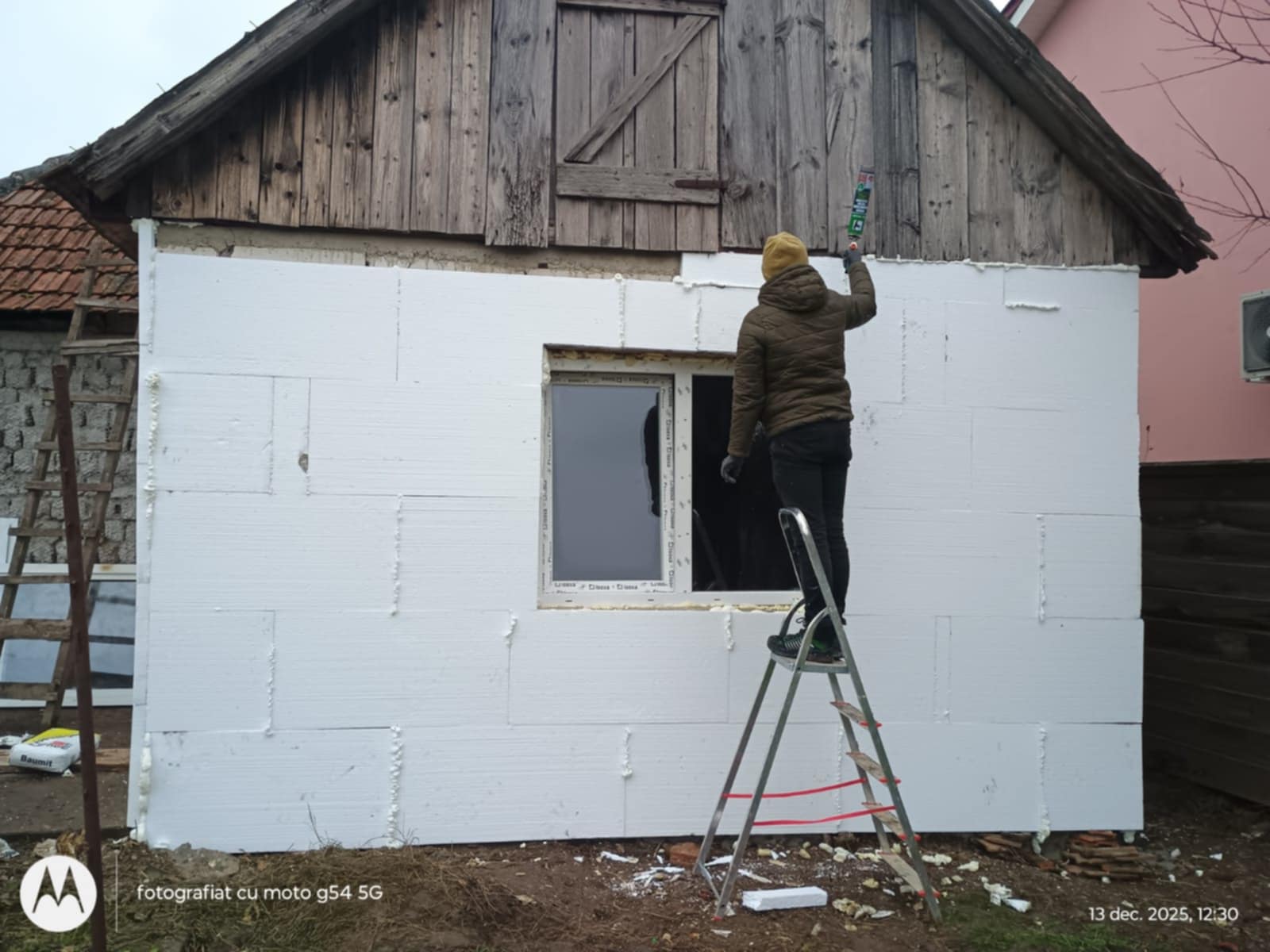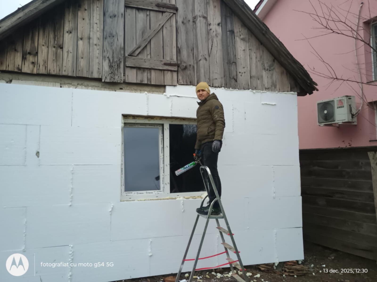 13 december 2025 - De foto's van het isoleren van de buitenmuren komen binnen. Het isolatiemateriaal wordt aan de buitenkant aangebracht. Dit wordt afgewerkt met pleisterwerk. Een beproefde isolatiemethode!